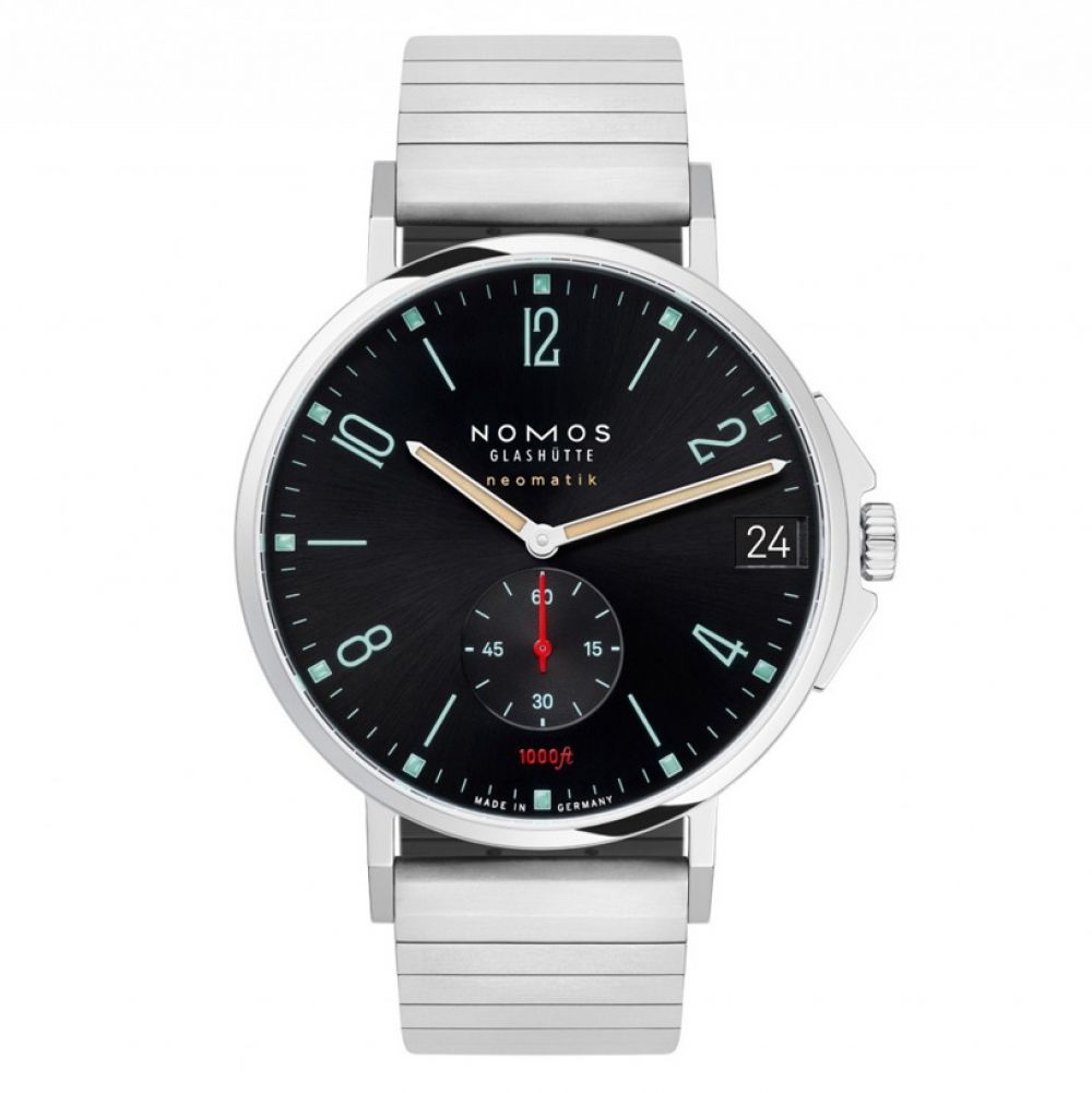 Im Inneren arbeitet das hauseigene Automatikwerk DUW 6101 – ein modernes neomatik-Kaliber aus der Manufaktur in Glashütte. Es steht für höchste Präzision, eine besonders flache Konstruktion und das charakteristische NOMOS-Datum mit großzügigem Datumsring.