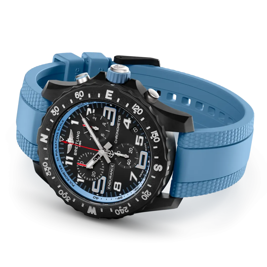 Die Breitling Endurance Pro vereint modernste Technologie mit einem dynamischen Design und ist der perfekte Begleiter für alle, die Sportlichkeit und Professionalität im Alltag leben. Das ultraleichte Gehäuse aus Breitlight® – einem exklusiven, 100% in der Schweiz gefertigten Hightech-Material – ist besonders widerstandsfähig, antimagnetisch, thermisch stabil und hypoallergen. Mit nur einem Bruchteil des Gewichts von Titan oder Edelstahl bietet es außergewöhnlichen Tragekomfort und eine warme, charakteristische Haptik.