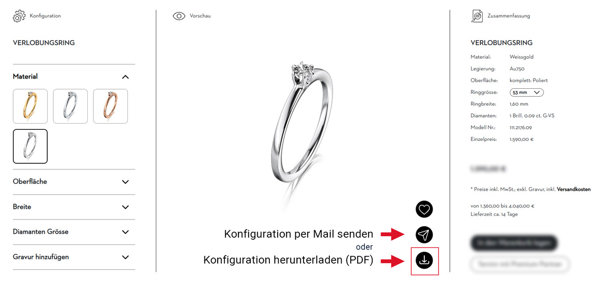 2. Gewählten Ring nach Ihren Vorstellungen konfigurieren